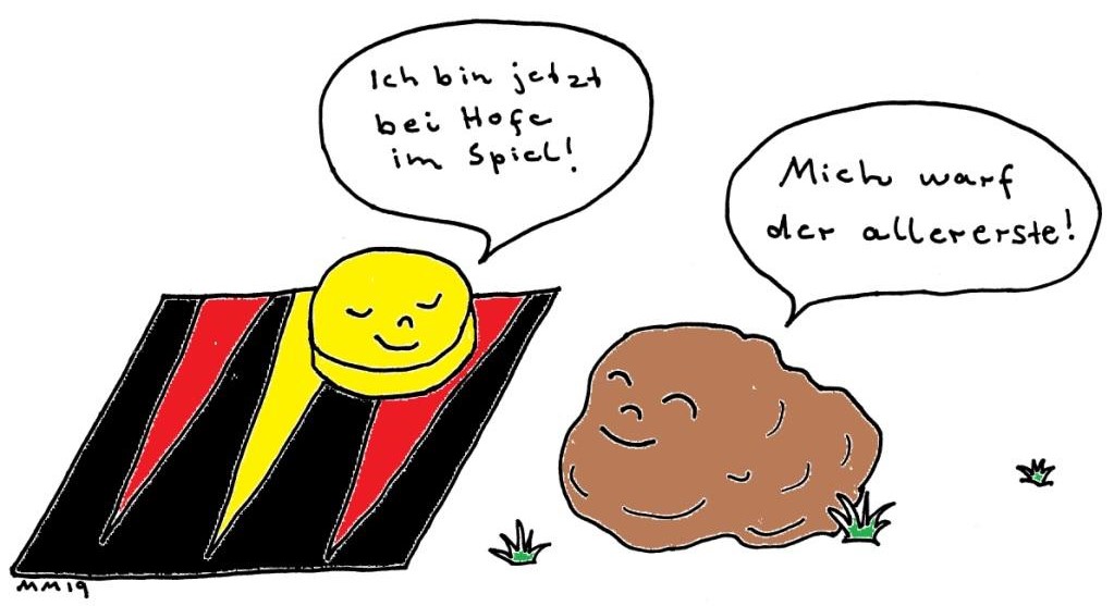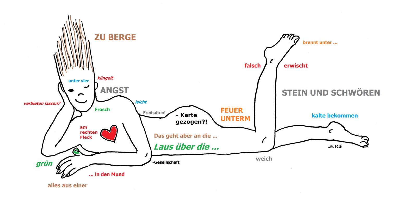 Während ich diesem Versprechen hiermit nachkomme, kann ich ja gleich auch – stark verkürzt – verraten, welche Redewendungen sich hinter den Bildern verbergen.