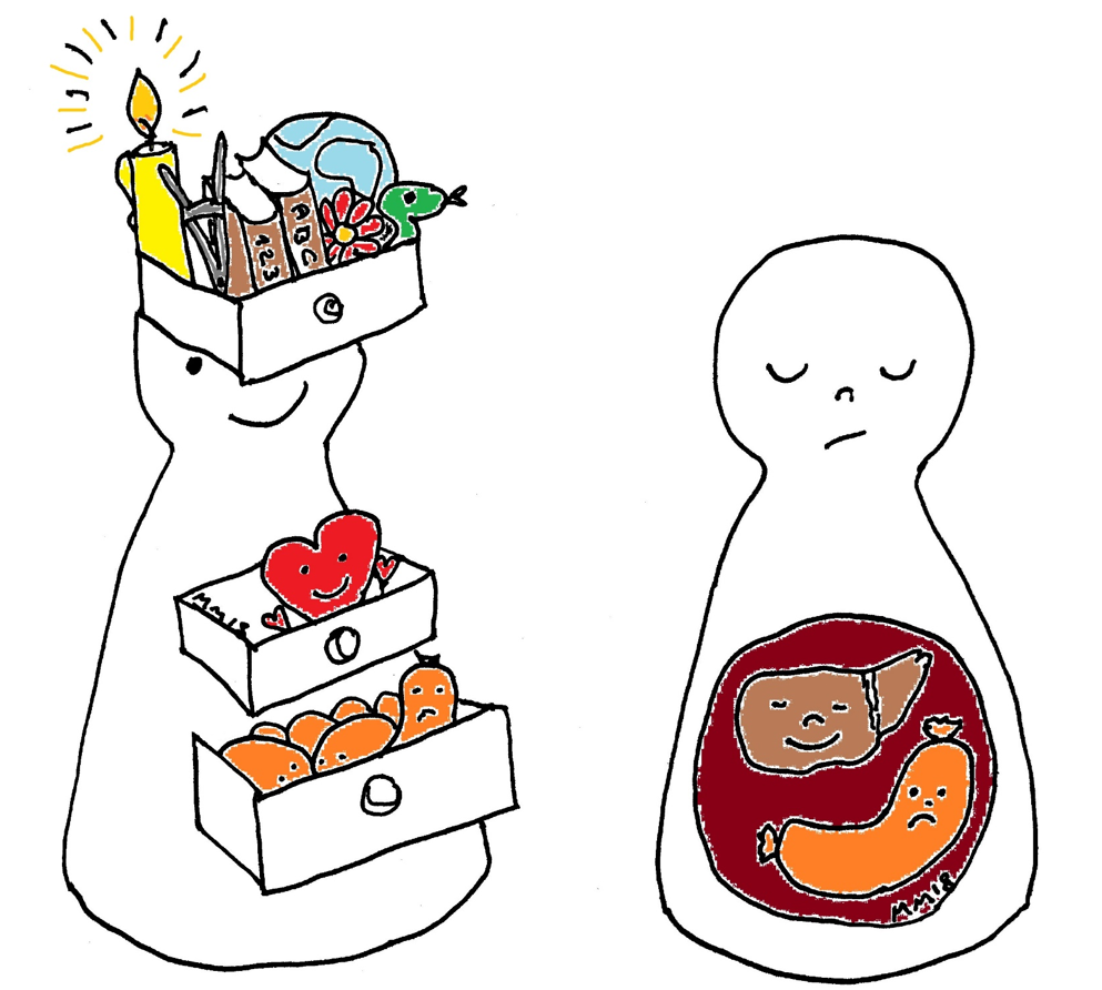Im Mittelalter stellte man sich das Herz, den Magen und andere Körperbereiche als Kästen im Körper vor.