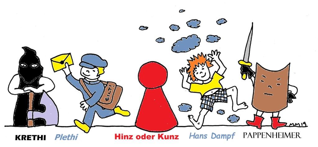 Auch »Hinz und Kunz« sind unterwegs. Das waren sie schon im Mittelalter, als Heinrich (= Hinz) und Konrad (= Kunz) derart beliebte Vornamen waren, dass fast die ganze Stadt so hieß.