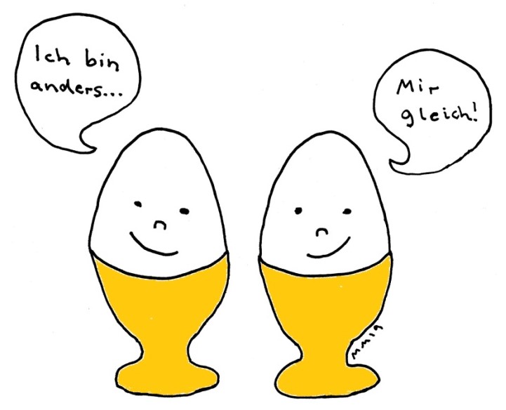Redensarten rund ums Ei erklären sich oft ganz naturgemäß: Abgesehen von Farbe, Größe und Herkunftsstempel gleicht ja tatsächlich »ein Ei dem anderen« so sehr, wie wir Menschen es nur durch Zwillingsgeburten hinbekommen.