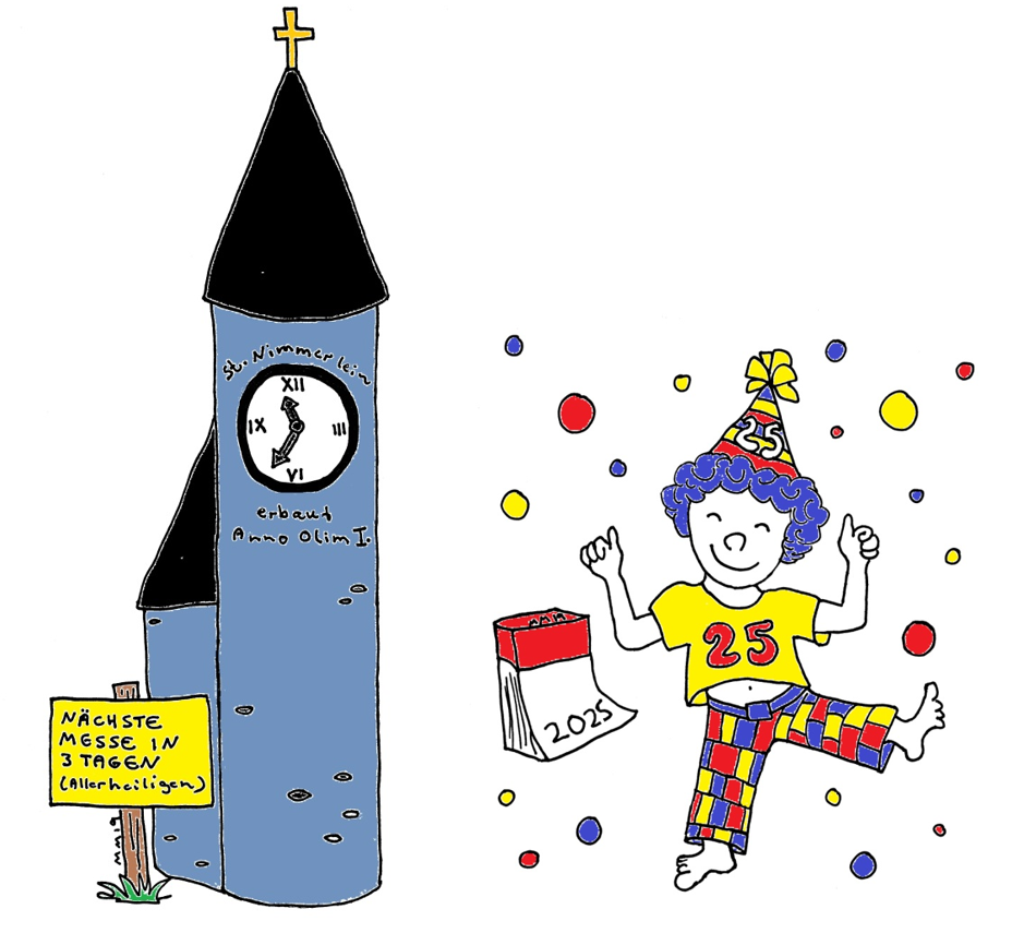 Wenig aussichtsreich ist es jedoch, »bis zum Sankt Nimmerleinstag« auf den Erfolg zu warten. Denn dann wartet man auf einen unmöglichen Termin. Patin dieser Redensart ist die in katholischen Regionen verbreitete Gepflogenheit, die Tage mit dem Namen des Heiligen zu bezeichnen, dem dieser Tag gewidmet ist. Einen Heiligen Nimmerlein aber gibt es im katholischen Heiligenkalender definitiv nicht. Also wird sein Tag auch niemals kommen … Oder? (Mehr in Buch.)